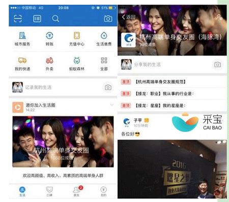 杭州支付寶高端單身交友圈(海豚灣)是什么鬼?近日支付寶已經小范圍陸續推出了基于同類人群的“脈脈互聯網精英圈”、“海歸精英圈”、“美劇圈”等。網友提供的信息顯示,收到邀請加入“高端單身交友圈”的人,還要通過支付寶人臉識別的顏值打分測試。如果顏值測試分數不夠,或者芝麻信用分在650以下,都無法進入。