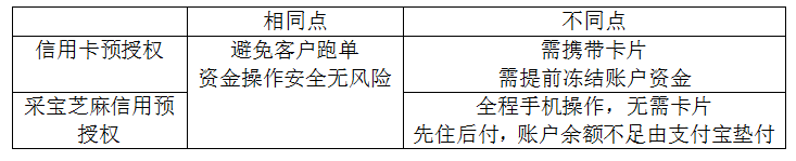 采寶芝麻信用預授權 VS 信用卡預授權